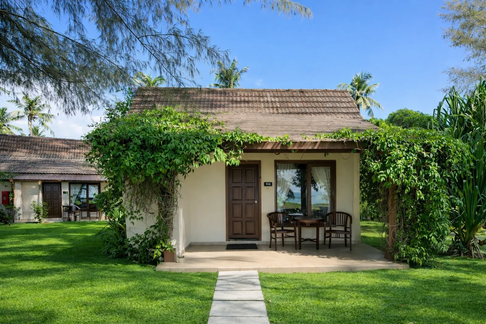 The ocean stretches quietly beyond your window, where palm trees sway gently and the tide moves in its timeless rhythm. In our Beach Facing Villas, mornings begin with soft sea light and evenings settle into the peaceful hush of waves meeting the shore.