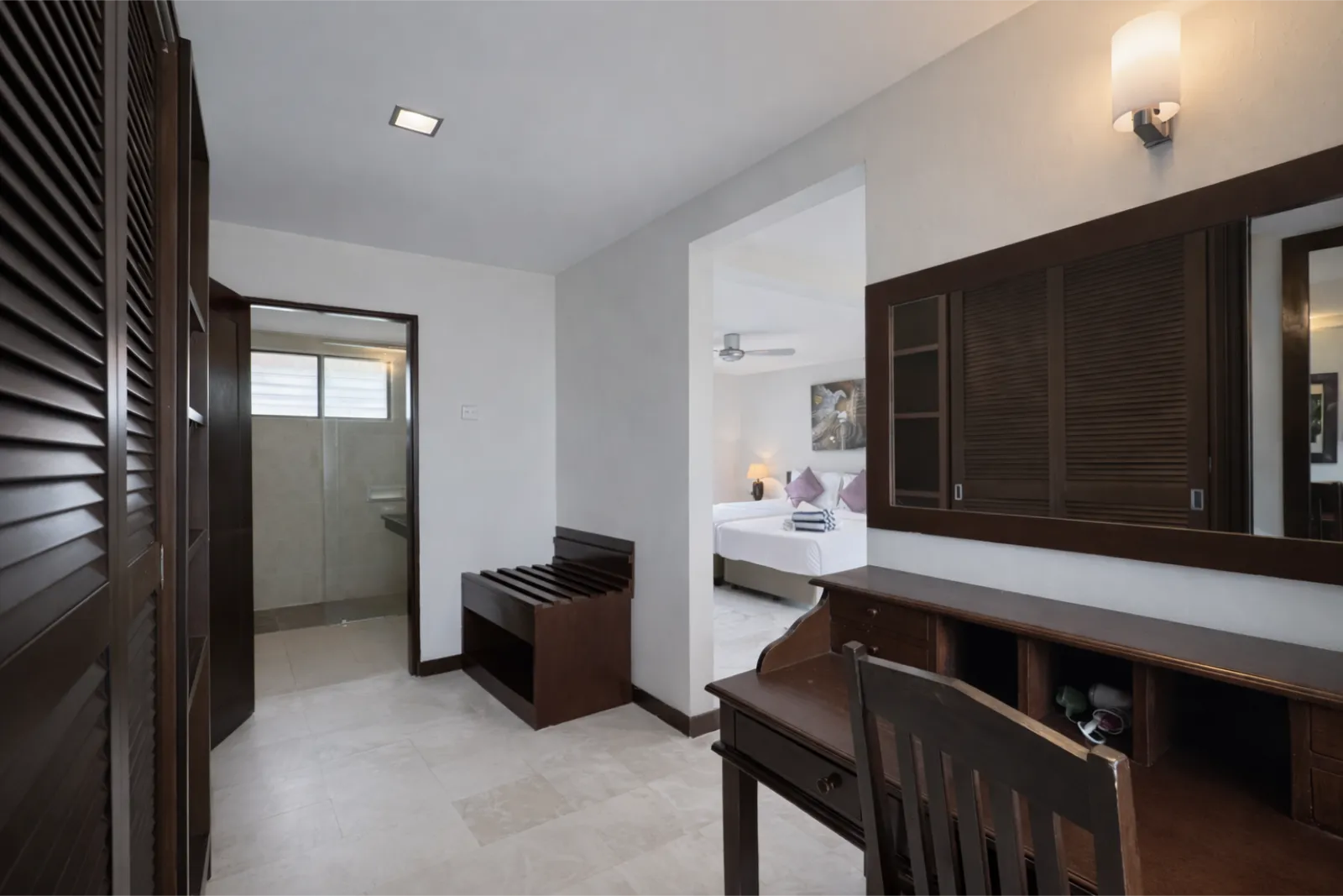 A calm and inviting retreat, the Deluxe Room offers a comfortable setting where soft light, warm textures, and views of the surrounding greenery create a relaxed space to slow down and enjoy the rhythm of island life.